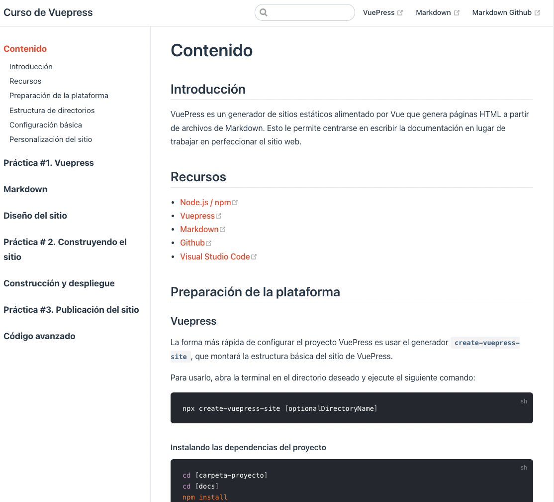 # Vuepress en Acción: ejercicios prácticos (opens new window)
